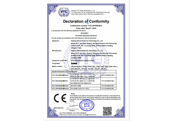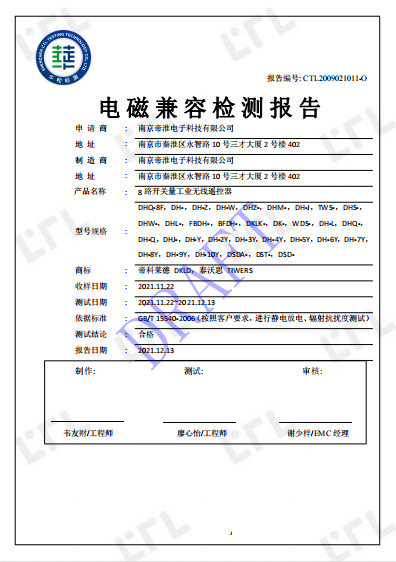 南京帝淮电子科技有限公司,国内工业??仄餍幸盗炀笠?,自主研发、定制、非标设计各类工业级无线遥控器、工业级有线控制器、智能化自主算法逻辑的本地控制器等系列产品。已经申请及正在申请的技术专利、外观专利有近三十项左右,并通过了CE欧盟认证、国家级试验检验报告、EMC电磁兼容认证等。